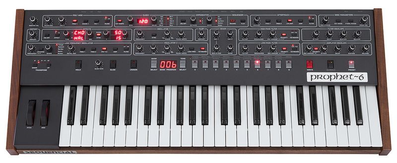 The Prophet 6 is, as its name implies, a six-voice polysynth. It offers two VCOs per voice, but these are not recreations of the Prophet 5's oscillators, which offered simultaneous ramp and pulse/PWM waves on Osc1, and simultaneous ramp, triangle and pulse/PWM waves on Osc2.