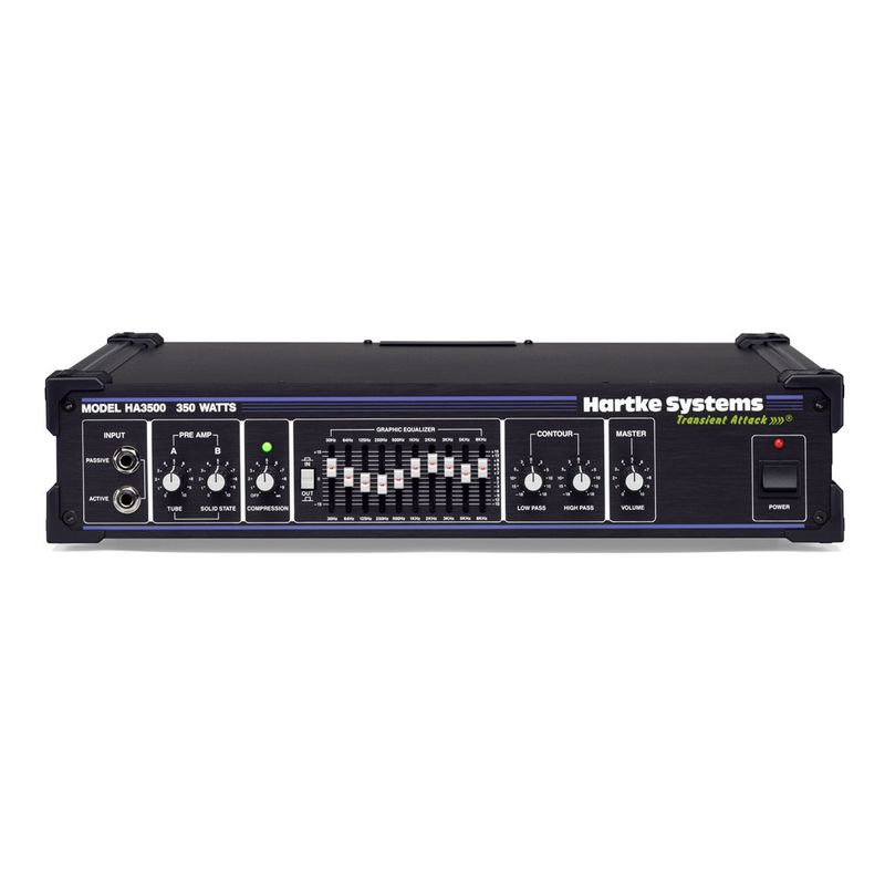 Found on stages all over the world, the Hartke 3500 bass amplifier is back in classic black. Yet, it retains all the same rock-solid performance and features as the original that have made it one of the most popular bass amplifiers of all time. The 3500's unique circuitry ensures that every nuance of your bass performance is faithfully reproduced. Featuring two Pre-Amp input knobs, allowing custom blending of tube and solid state tone, and ten-band graphic EQ, the 3500 is ideal for the player who wants plenty of power and control.
